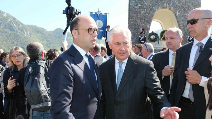 Tillerson estuvo acompañado por el ministro de Exteriores de Italia, Angelino Alfano, y la alta representante de la Unión Europea para la Política Exterior, la italiana Federica Mogherini.