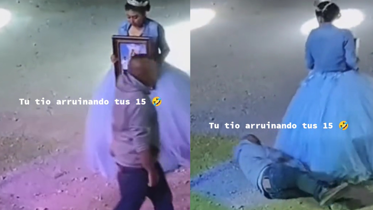 En un video que se hizo rápidamente viral, se ve como un tío pasado de tragos casi arruina la fiesta de su sobrina la quinceañera .