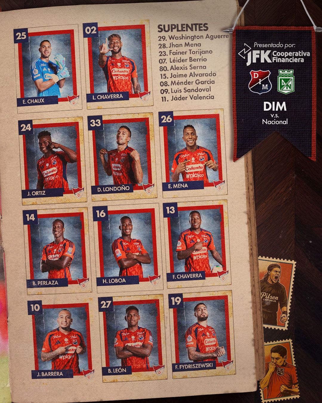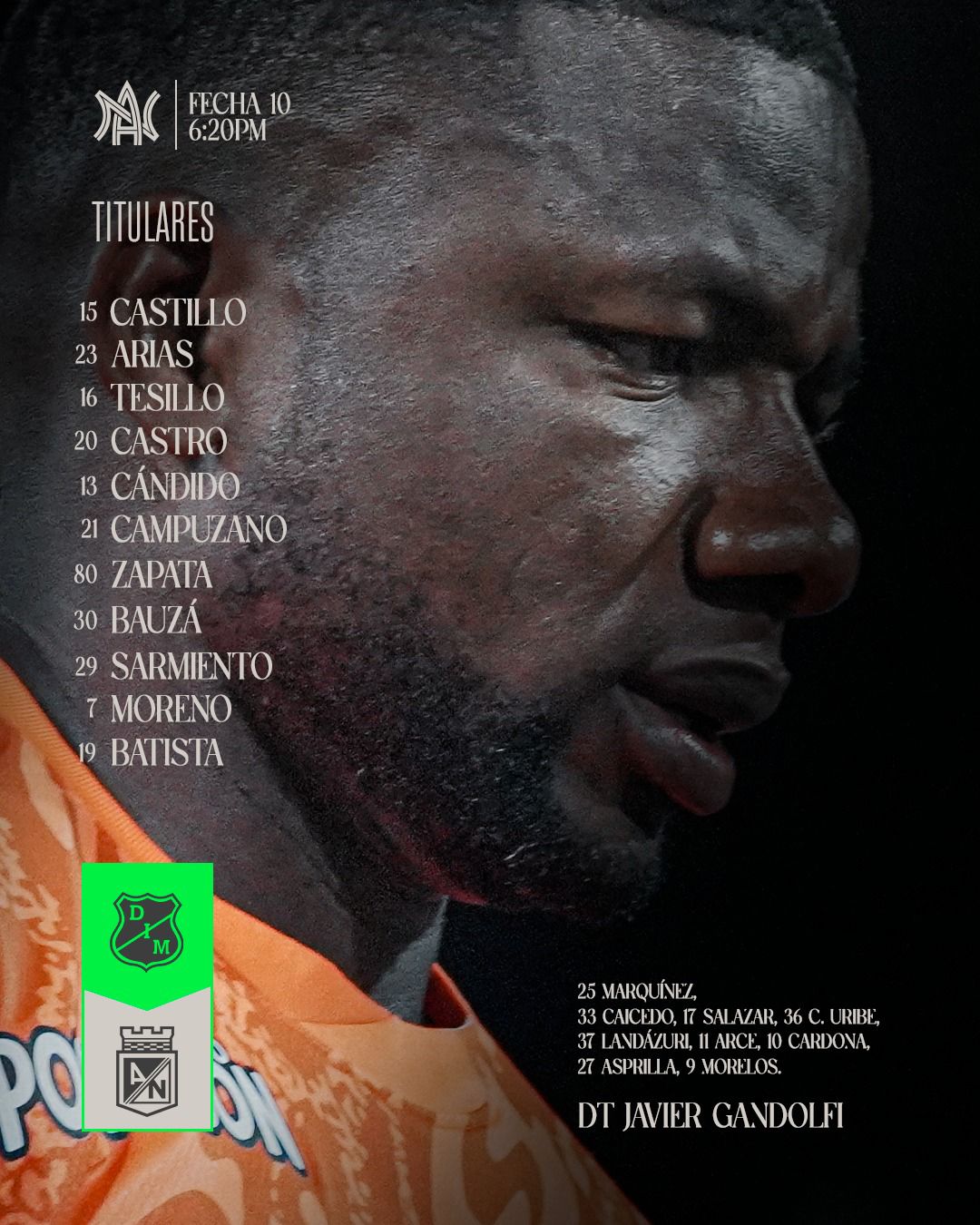 También serán titulares del verde paisa Jorman Campuzano, Juan Manuel Zapata, Juan Bauzá, Andrés Sarmiento, Marlos Moreno y Facundo Batista.