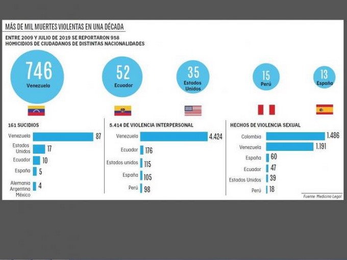 Medicina Legal reveló un informe de peritos donde informan las cifras de muertes en el país, relacionadas con hechos violentos, de personas de nacionalidad extrajera.