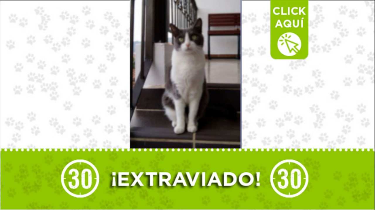 Este gatico llamado “Tom” se perdió en el parque de Robledo, Medellín.