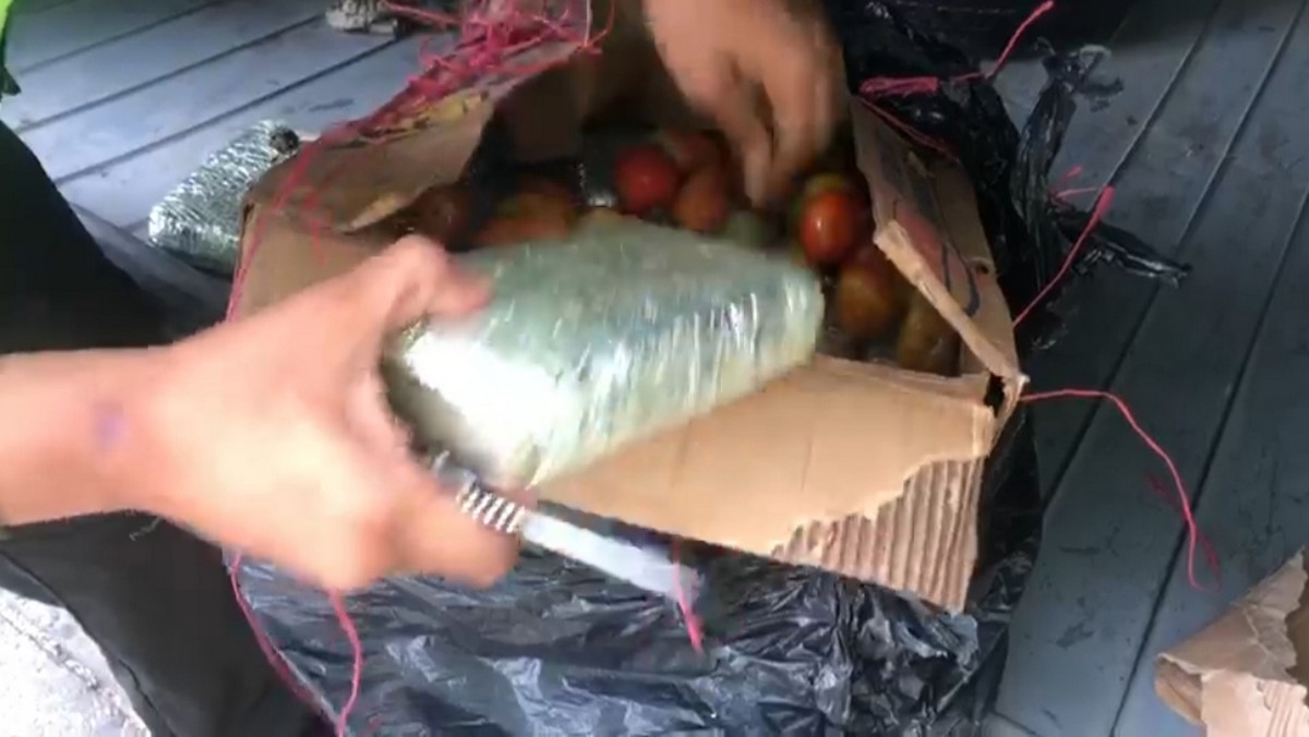 Los uniformados encuentran en la bodega dos cajas de cartón dentro de una bolsa negra y al revisarla, hallaron en su interior 40 paquetes de marihuana forrados con cinta plástica ocultos entre unos tomates; dicha mercancía pertenecería a Didier , quien buscaba llegar a Santa Marta y embarcarse hacía la ciudad de Barranquilla.
