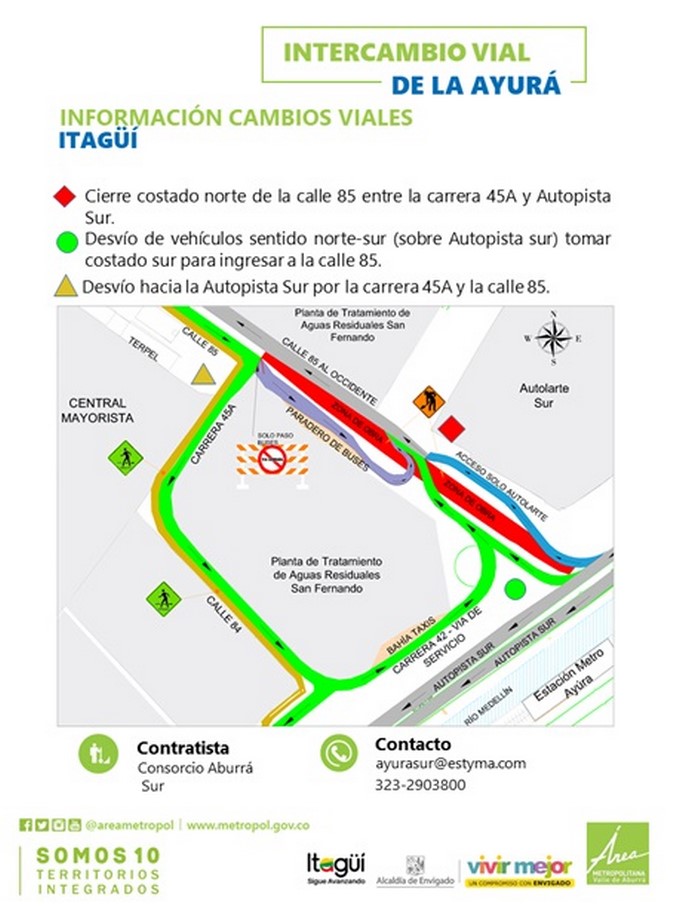 Para dar comienzo a la construcción de los cimientos, en Itagüí se cerró el separador central de la calle 85, entre la carrera 45A y la Autopista Sur. Igualmente, se procedió al cierre de la calzada norte de la calle 85, entre la Autopista Sur y la calle 45A, a un costado de Autolarte, lo que genera un desvío de los vehículos que vienen sobre la Autopista Sur para tomar la calle 85.