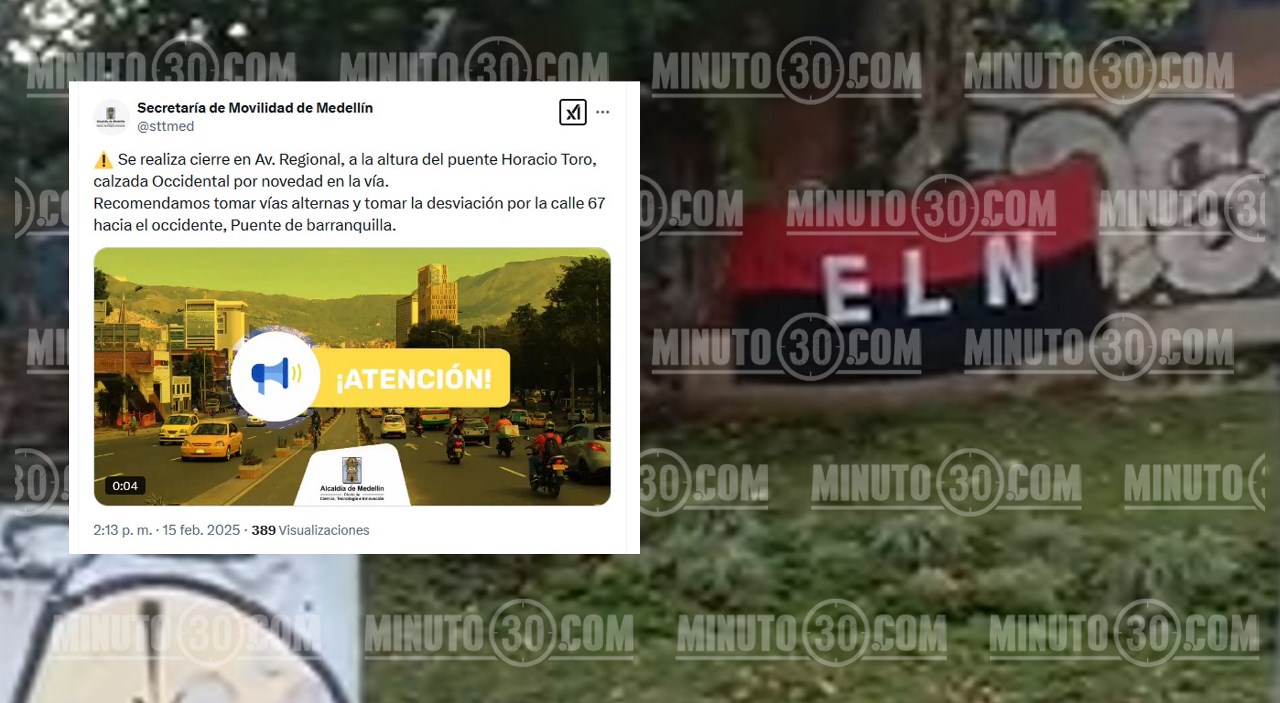 Resumen: ¡Cierre en la Avenida Regional de Medellín! Autoridades reportan presencia de trapo del ELN y recomiendan tomar vías alternas