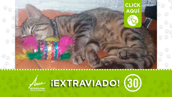 Tiene un collar gris con negro brillante en su cuello y una bolita roja, si usted lo ha visto por favor llamar al 3234857396