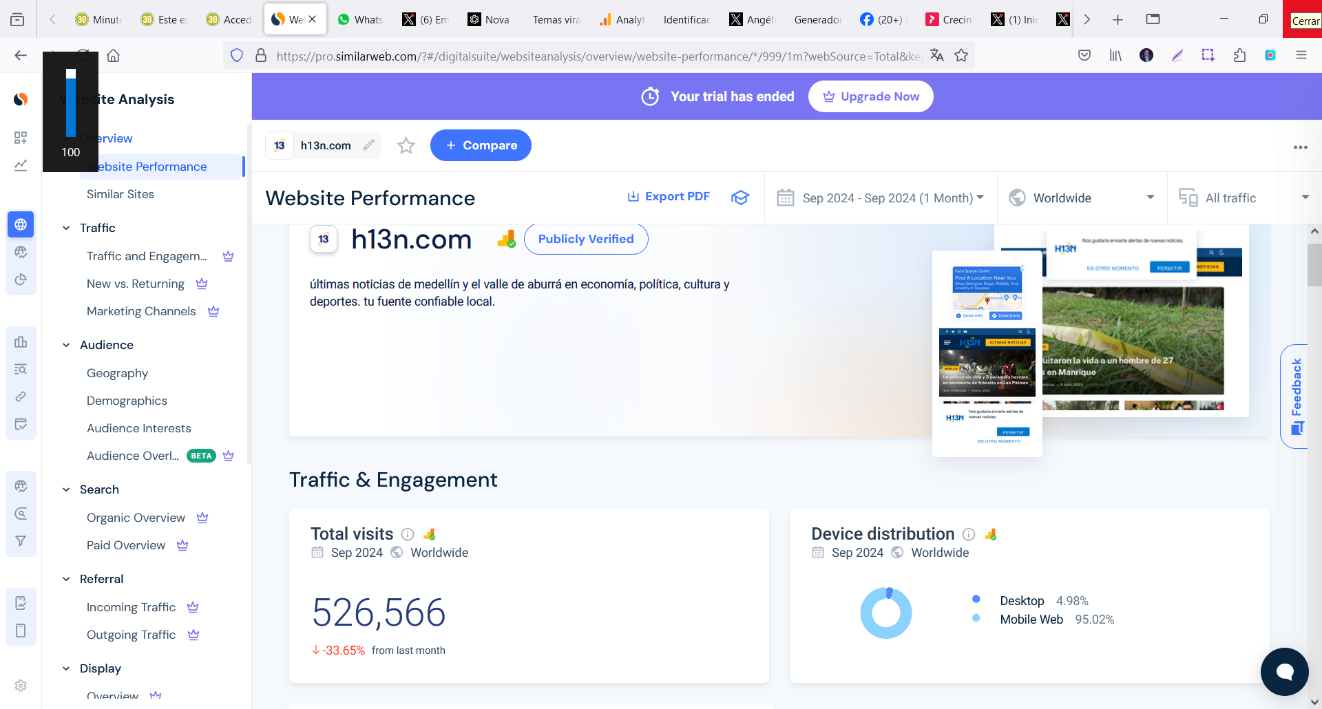 Resumen: Este es el verdadero TOP 10 de los medios digitales en Antioquia, con base en métricas entregadas para el mes de septiembre de 2024, por Similarweb.com