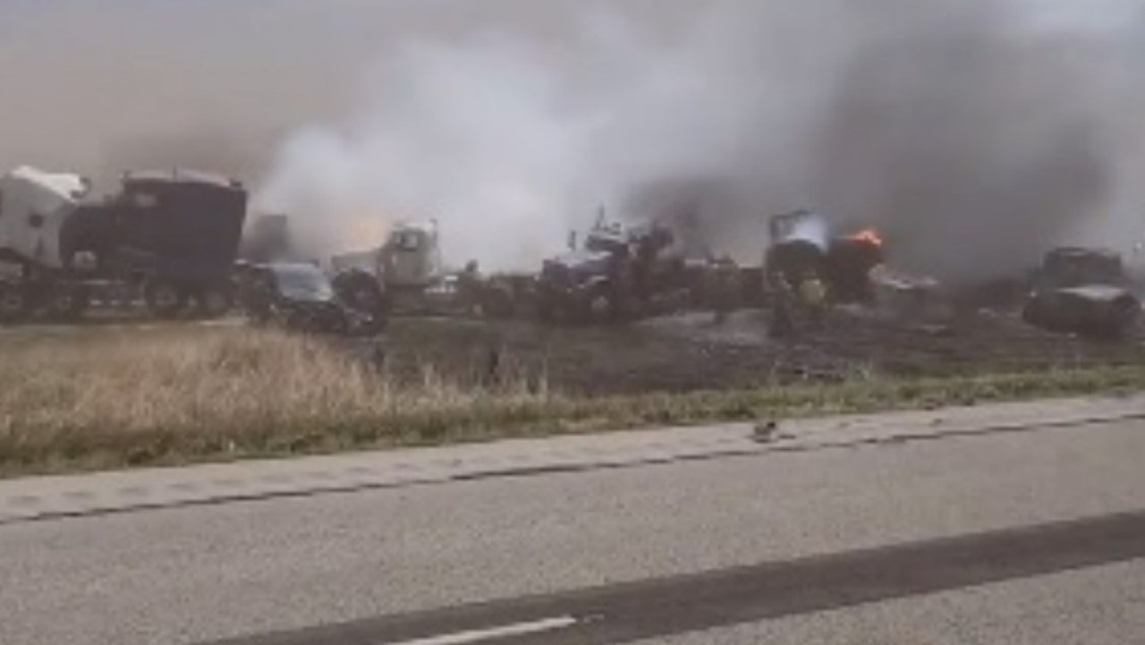 Massive pileup on I-55 south of Springfield, Illinois has closed the interstate for nearly 30 miles. Blowing dust off freshly plowed fields led to very low visibility#ilwx