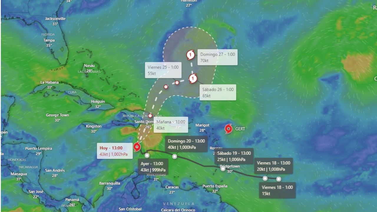 De acuerdo con lo indicado en los reportes, Franklin atravesará el centro del mar Caribe en la madrugada del martes 22 de agosto y, posteriormente, se desplazará hacia el norte y afectará a República Dominicana y Haití.