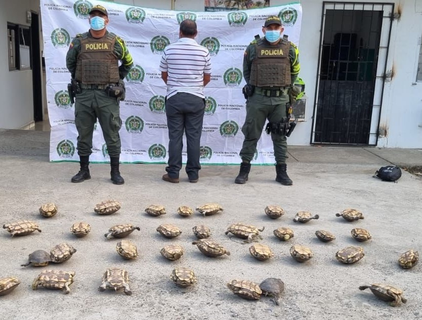 El hallazgo se realizó en la vía que de Los Córdobas conduce a Puerto Rey, y el barrio Las Palmeras del municipio de Tuchín. Allí, los sujetos de 43, 46 y 50 años fueron sorprendidos con 53 tortugas en costales, la mayoría de ellas ya estaban muertas.