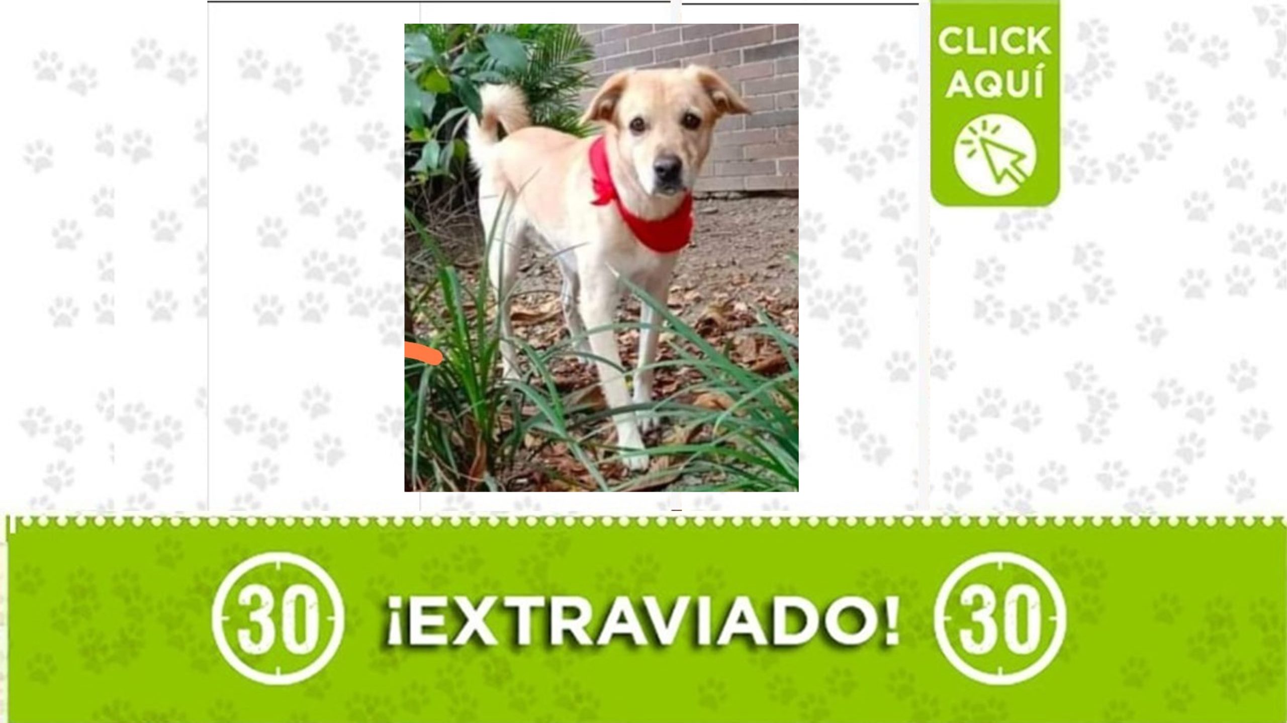 La mascota porta la pañoleta de la foto. Es un poquito arisco pero no agresivo. Si de pronto le puede dar algo de “pollito” puede atraer su atención.