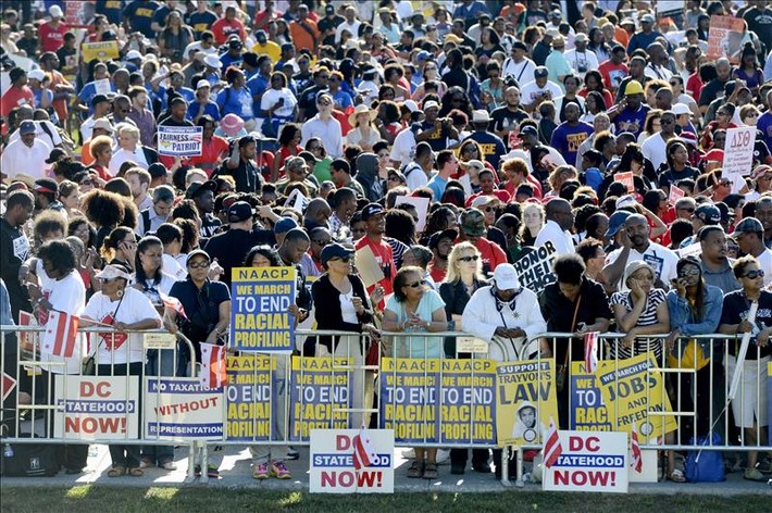 Miles de personas se congregaron desde primera hora de la mañana de hoy en las inmediaciones del monumento a Abraham Lincoln para celebrar el aniversario de la histórica Marcha sobre Washington en la que Luther King pronunció su famoso discurso “Tengo un sueño”.