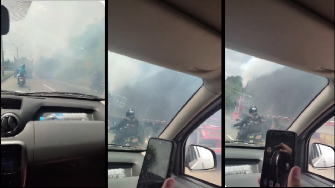 En el video compartido por una ciudadana quedó el momento en el que una tractomula de color rojo dejó el humo negro. “Es el pan de cada día”, dijo la mujer que grabó el video en la mañana de este miércoles 25 de mayo.