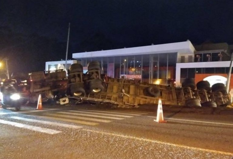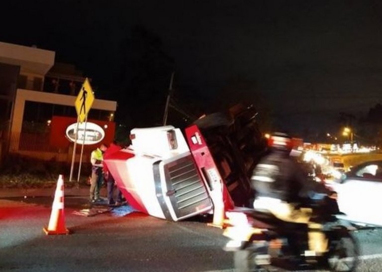 De acuerdo al reporte de la ciudadanía, versiones preliminares indican que la tractomula se volcó por esquivar a otro vehículo y se montó sobre el carril en sentido sur-norte.