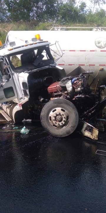 Autoridades investigan el motivo que originó la colisión entre los vehículos de carga.