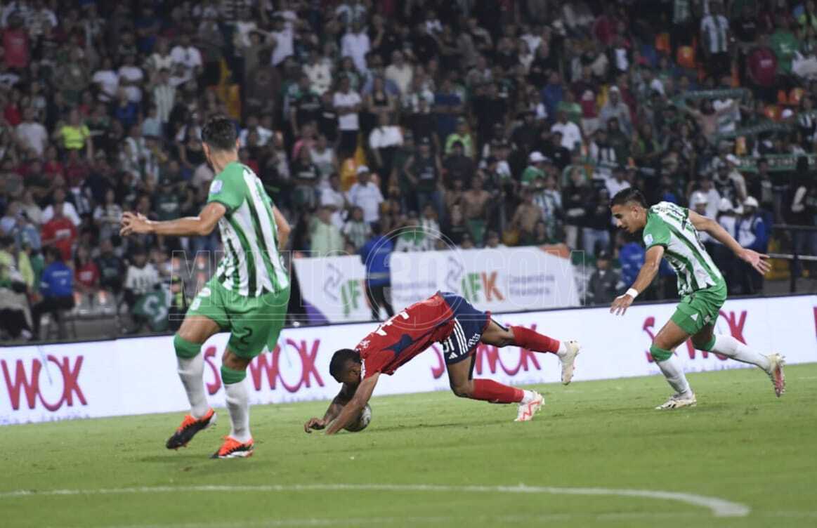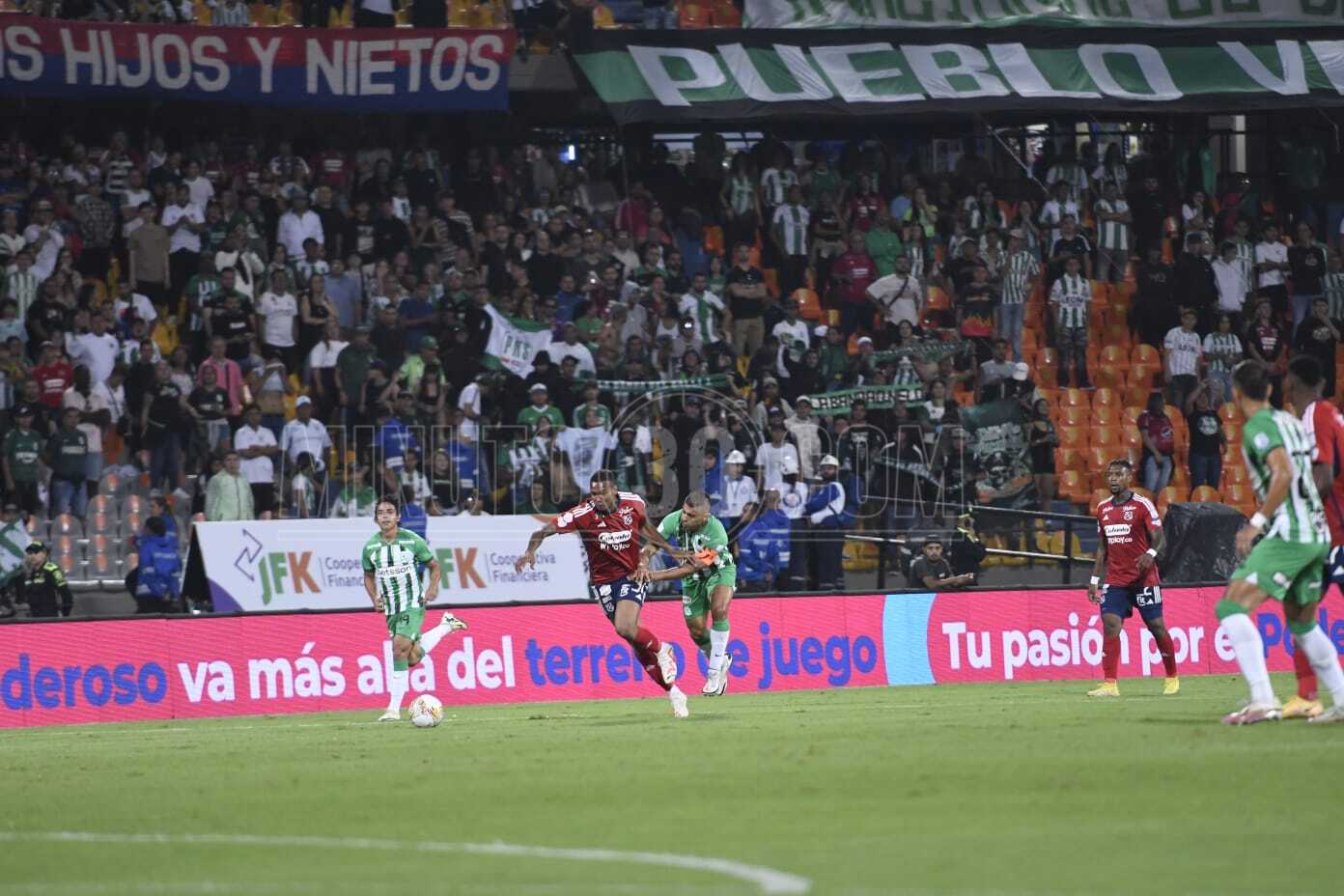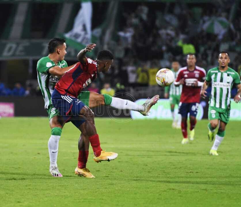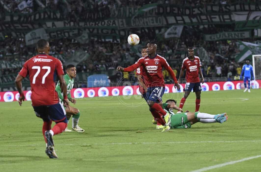Al minuto 30 del juego llegó el empate del verde paisa, luego de la anotación desde afuera del área de Édier Ocampo, que pateó duro al palo derecho de Yimi Gómez que no pudo evitar la anotación.