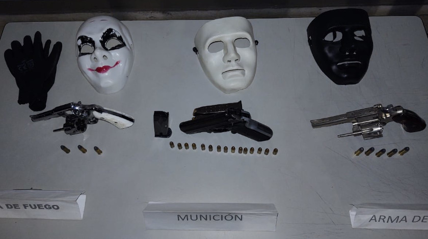 Durante la reacción policial fueron incautados dos revólveres marca Martial calibre 38, una pistola Pietro Beretta calibre 7.65 y 12 cartuchos para armamento de corto alcance.