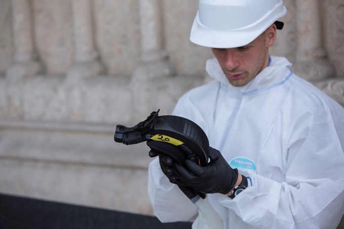 Sobre el terreno, además de arquitectos y obreros, trabaja un laboratorio especializado en monumentos históricos investigando el estado de las piedras para saber si el fuego las ha despojado totalmente de valor o es posible reutilizarlas.