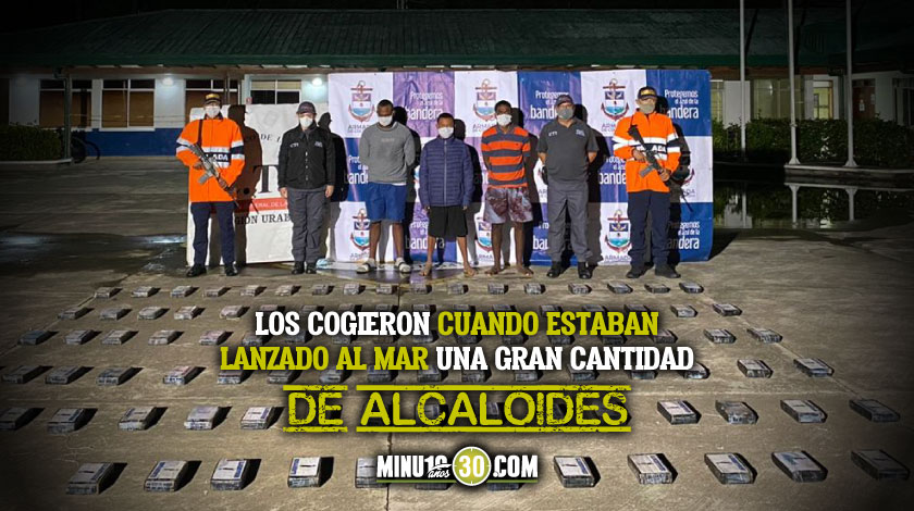 La Fiscalía General de la Nación obtuvo medida de aseguramiento intramural contra 3 ciudadanos panameños capturados el pasado 29 de octubre en el Golfo de Urabá, cuando presuntamente transportaban 97.4 kilos de cocaína en una lancha rápida.
