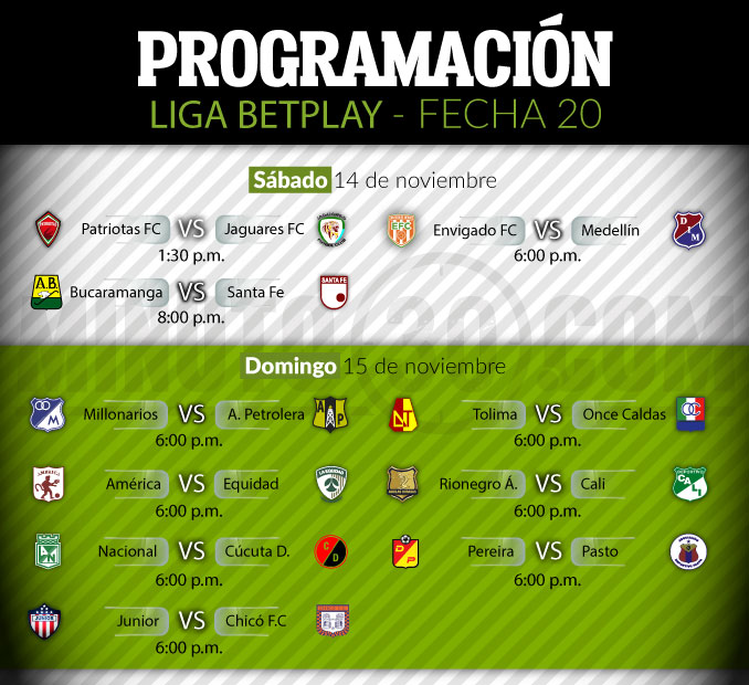 Minuto30.com- Con tres partidos se abrirá este sábado la programación de la fecha 20 de la Liga BetPlay I-2020. Ninguno de estos juegos tiene incidencia en la definición del grupo de los ocho.