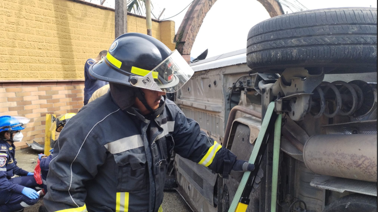 Los Bomberos del municipio de La Estrella atendieron un accidente de tránsito que dejó tres personas lesionadas, en la entrada de un reconocido motel en el sector Ancón.