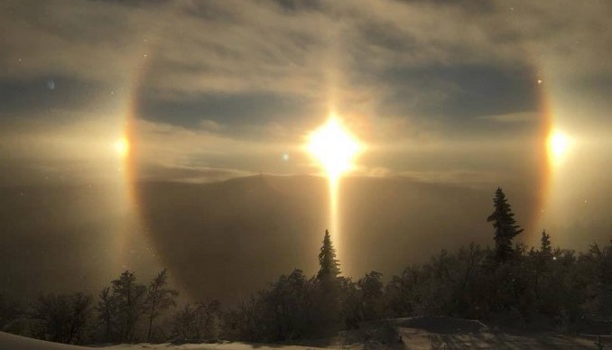 Conmoción fue lo que generaron imágenes grabadas por un esquiador en la localidad sueca de Vemdalen, en las que retrataba un cielo con tres soles a principios del mes de diciembre.