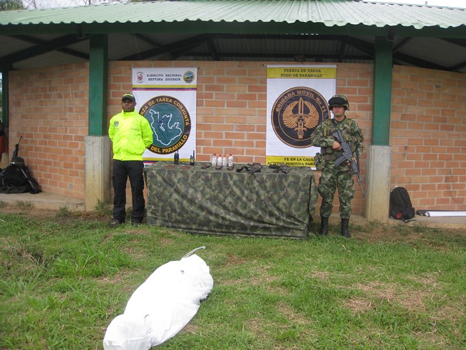 El Brigadier General Leonardo Pinto Morales comandante de la Fuerza de Tarea Nudo del Paramillo felicito a sus hombres por los logros obtenidos y resalto el sacrificio que realizan buscando la paz de esta zona del país, agradeció a la población civil la colaboración por medio de la denuncia oportuna e invito a los integrantes de las guerrillas que la desmovilización es la salida, que el gobierno nacional los quiere ayudar para reintegrarlos a la sociedad.