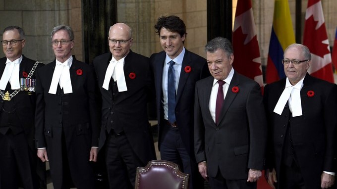Santos, por su parte, recalcó el agradecimiento “de todo corazón (y) el apoyo decisivo de Canadá” en el proceso de paz de Colombia.