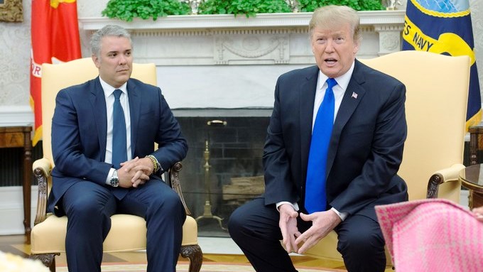 “Nuestros militares (estadounidenses y colombianos) están muy concentrados y trabajando juntos, vamos a ver cómo esto funciona”, dijo Trump en declaraciones a la prensa durante su encuentro con Duque en el Despacho Oval de la Casa Blanca.