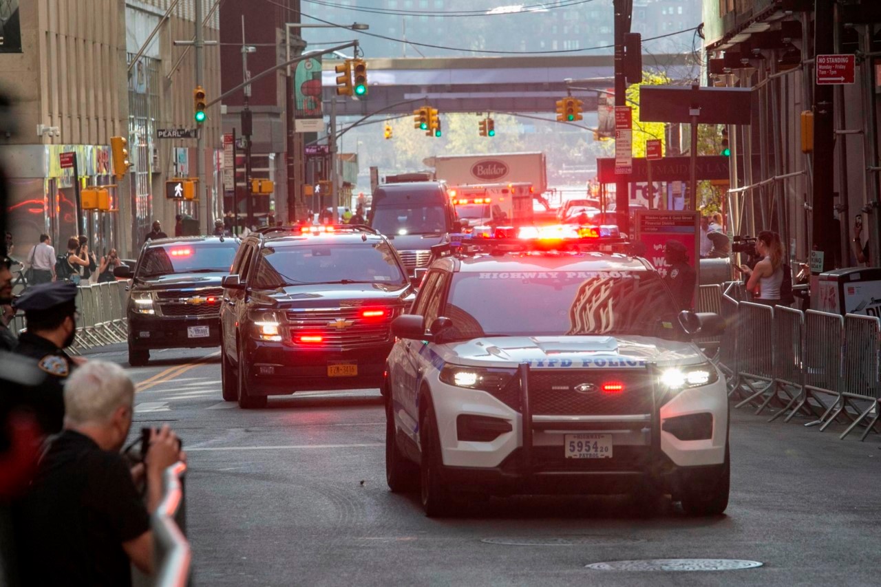 La caravana del expresidente estadounidense Donald J. Trump llega a la oficina del Fiscal General del Estado de Nueva York en Nueva York, EFE/Sarah Yenesel