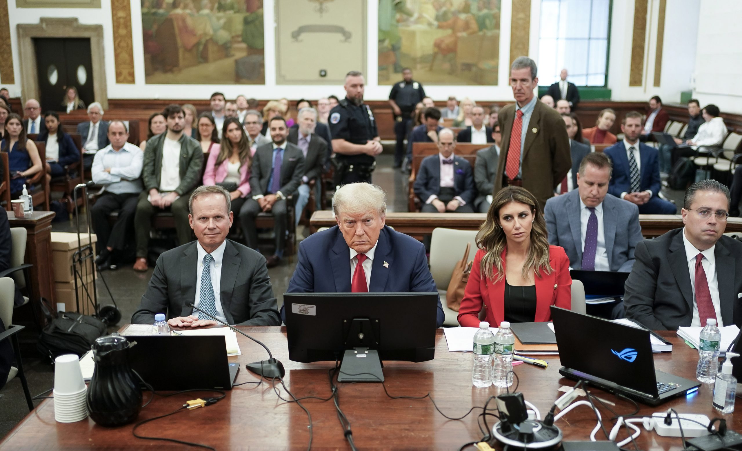 Trump, vestido con traje de chaqueta azul marino, entró en la sala con semblante serio y se sentó en la mesa principal frente al juez con su equipo de defensa, unos metros por delante de la fiscal Letitia James, impulsora del caso, que observaba desde la primera fila de la bancada en el extremo opuesto a Eric.