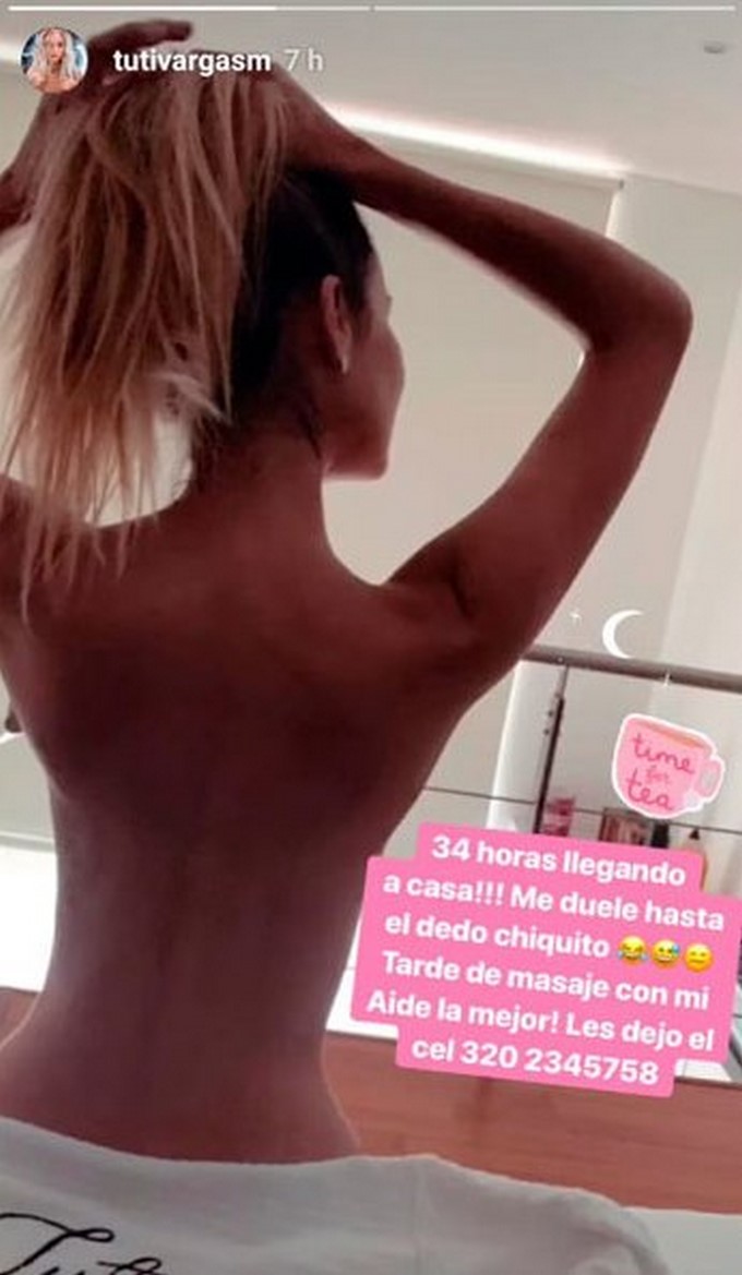 A Tuti la vimos muy elegante y sofisticada paseando por las calles de Bangkok, Tailandia, ciudad que visitó por compromisos comerciales en los que tuvo la oportunidad de compartir con la ex virreina universas Ariadna Gutiérrez, pero la llegada a Colombia es larga y ella misma lo experimento, por lo que su cansancio la hizo llamar de urgencia a su masajista de cabecera.