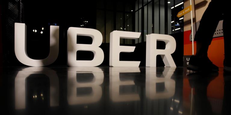 Logo de Uber durante una rueda de prensa enTaipei (Taiwán) hoy, 13 de abril de 2017. La multinacional estadounidense de servicios de transporte compartido Uber volvió hoy a funcionar en Taiwán después de dos meses de parón, tras encontrar un nuevo modelo aceptable para el Gobierno isleño, al que debe unos 2,23 millones de dólares (2,1 millones de euros) en multas impagadas. EFE