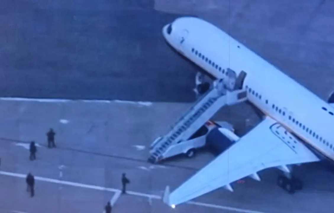 Escalerilla del avión por el que maduro bajaría minutos después a su llegada a Nueva York, donde fue reciido por la DEA y FBI