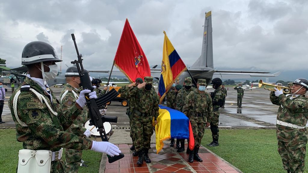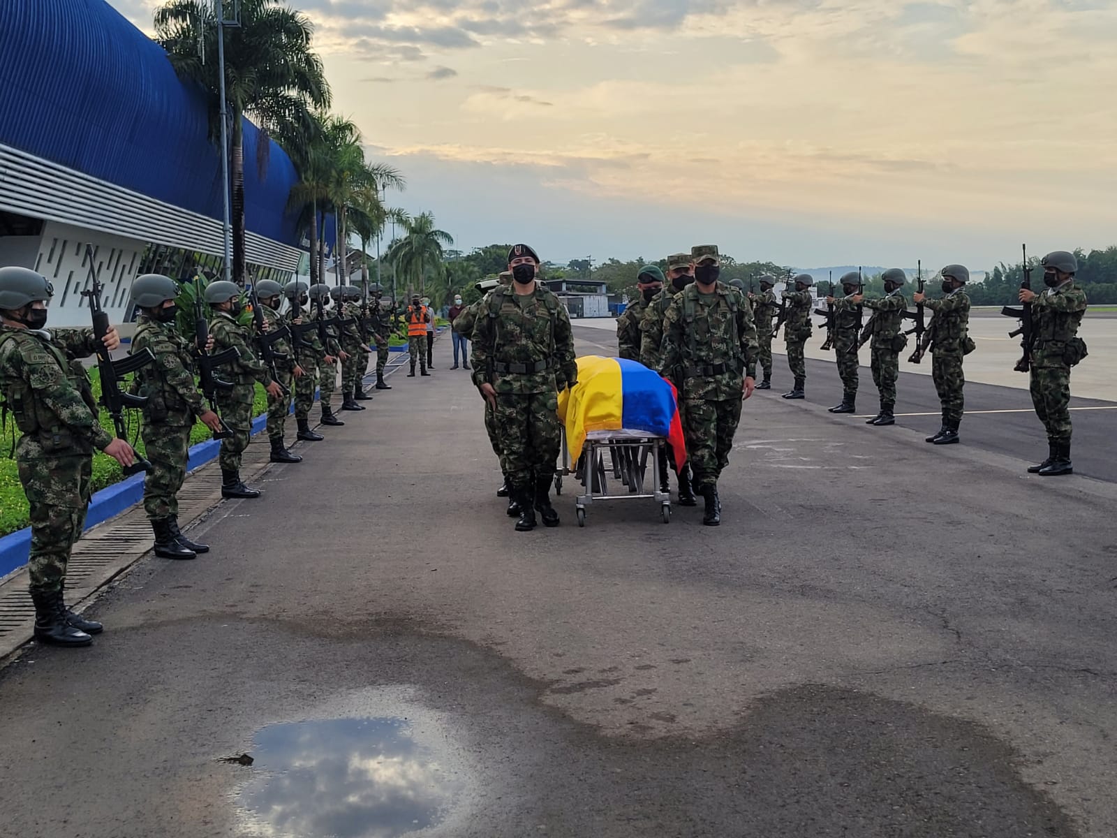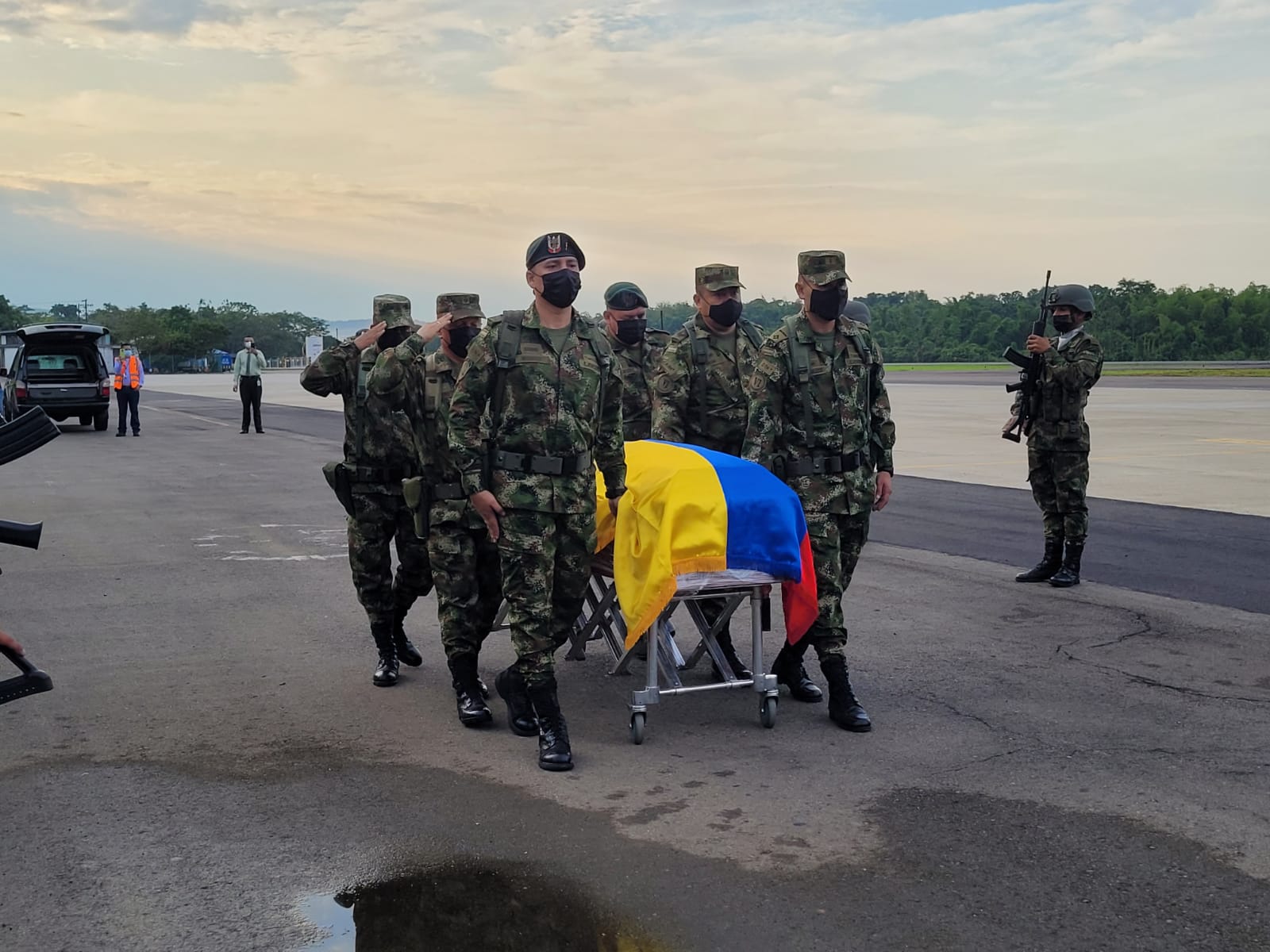 Por su parte, el soldado Echeverría fue recibido en el Aeropuerto Gustavo Artunduaga Paredes, de la ciudad de Florencia, Caquetá, donde acompañamos a su familia a darle el último adiós, con apoyo de la Sexta División.