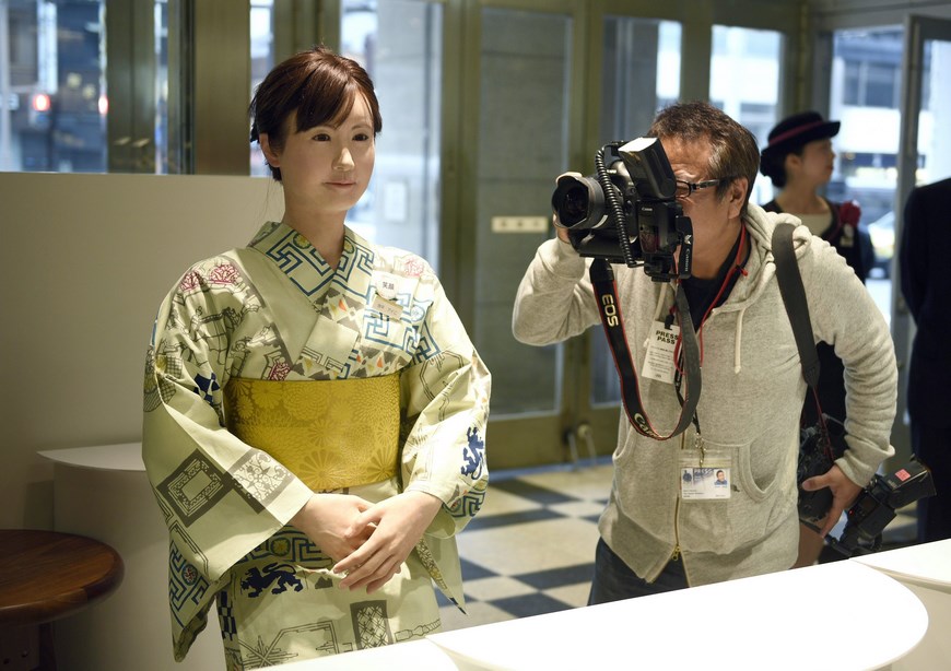 Un androide hiperrealista con apariencia de mujer es la nueva recepcionista de los famosos grandes almacenes Mitsukoshi de Tokio, que informa a los clientes sobre la oferta y los eventos del establecimiento.
