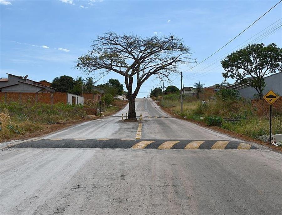 La avenida fue asfaltada recientemente, y en vez de talar el árbol, la municipalidad optó por mantenerlo.
