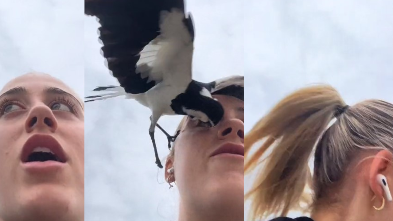 En redes se hizo viral un video que muestra el momento en que una ave se le acerca y y se va directo con su pico de frente a el ojo a una mujer en Australia.