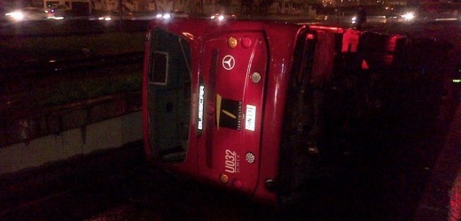 Una de las Hipótesis que se maneja en torno a este fuerte accidente es que posiblemente el conductor del gigantesco bus no calculó bien el momento de ingresar al túnel de la 80 y una de las llantas delanteras mordió el sardinel lo que desestabilizó el pesado automotor produciéndose el volcamiento.