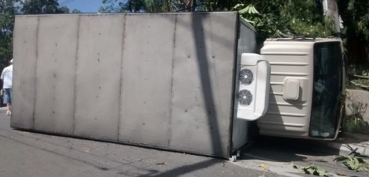 Según testigos del hecho, el vehículo estaba estacionado mientras lo descargaban, pero el conductor se enteró de que el camión se había volcado minutos después.
