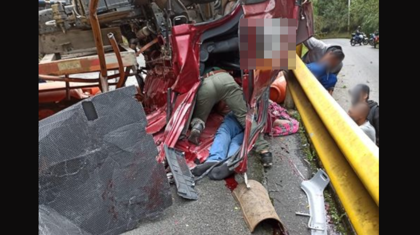 Según las primeras hipótesis del terrible hecho, es que el vehículo de transporte de pipetas de gas se habría quedado sin frenos, lo causó se terminara volcado en medio de la vía.
