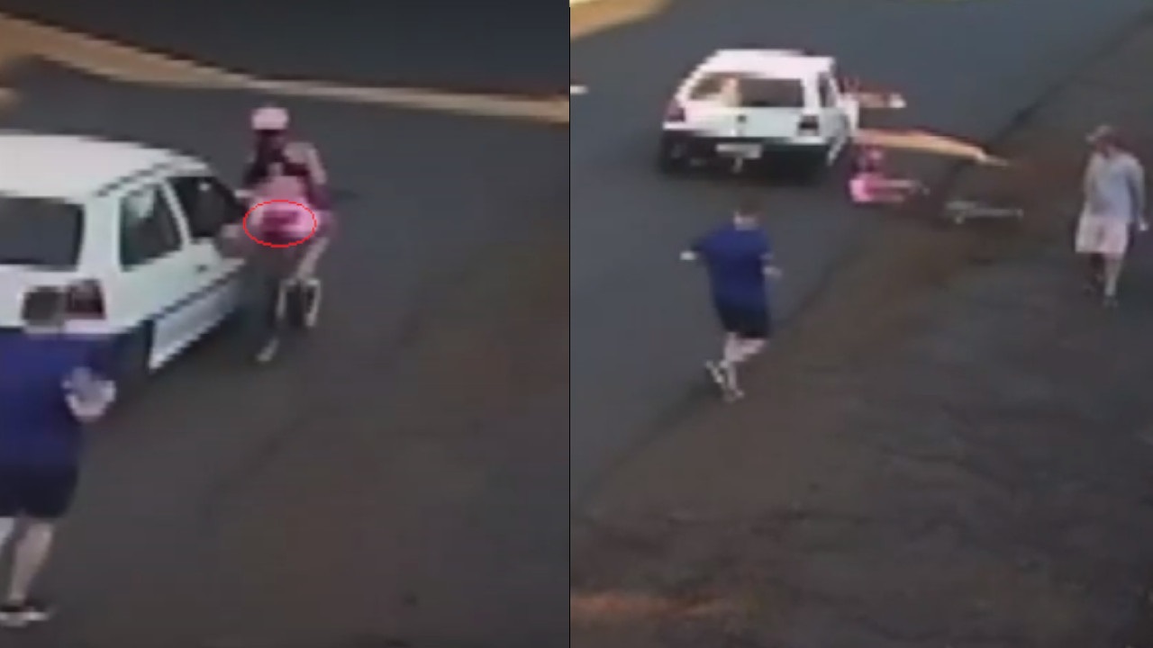 El hecho se registró en la vía de Paraná en Brasil, allí, la mujer pierde el equilibrio ante la vista de varias personas que corren a auxiliarla, instantes después de que un sujeto que se movilizaba en un automóvil la manosea.