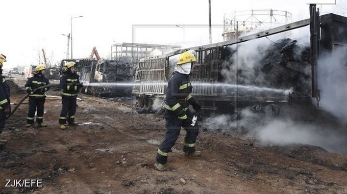 La explosión se produjo el pasado miércoles, provacando el incendio de 38 camiones y 12 vehículos que estaban en esa vía.