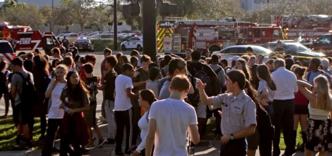 New Video#2: This perspective shows high school students in #Ocala walking out with arms raised as armed officers clear the building. 1 student injured, gunman in custody. Students being bused to a church, parents urged to stay away from Forest High,@ActionNewsJax @WOKVNews @WFTV pic.twitter.com/ykVbpEJXIA