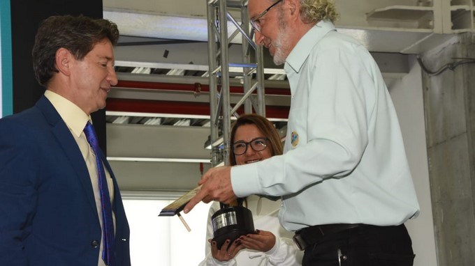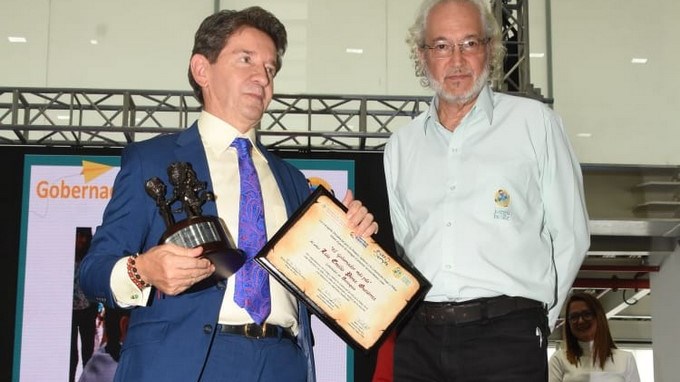 Fernando Martelo, presidente del Consejo de fundadores de la Corporación Juego y Niñez, fue quien le entregó al Gobernador el reconocimiento por el trabajo que adelanta en el departamento en atención a la niñez, la protección de su derecho al juego y la construcción de estrategias de protección.