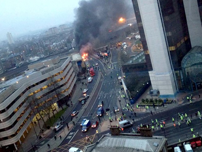 El accidente se produjo en la hora punta matutina cerca de un puente muy concurrido que cruza el río Támesis, frente al edificio del MI6, los servicios secretos británicos, y provocó severos trastornos en el tráfico rodado. También provocó el cierre temporal de las estaciones de autobús y de metro colindantes.