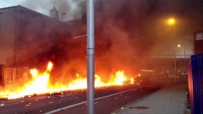 También pudieron verse dos o tres coches en llamas cerca del edificio, mientras las primeras imágenes de las televisiones mostraron escombros ardiendo.