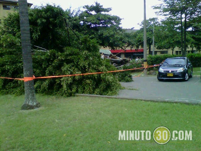 Minuto30.com .- La tarde de este martes se presentó un accidente en la Universidad Pontificia Bolivariana, cuando un árbol cayó; el hecho dejó un herido leve, que fue remitido de inmediato a un Centro Hospitalario cercano y daños en la caseta de entrada.