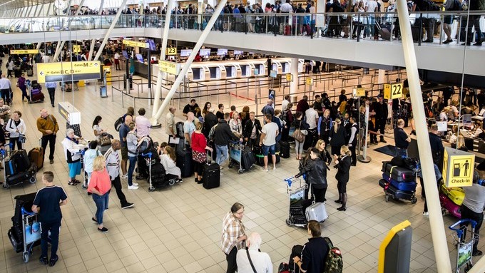 Pasajeros caminan por una de las salidas del aeropuerto de Schiphol, en Holanda