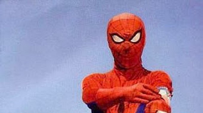 Luego que hay una aparente calma sale este hombre personificando al famoso super héroe de tiras cómicas y se enfrenta a la policía, no con telarañas ni super poderes, si no con unos raros movimientos  que dejaron inmóviles a las autoridades que atentos, esperaban ver el actuar de este sujeto.
