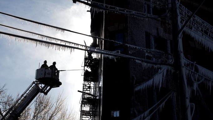 El incendio se ha desatado en una gélida mañana en Nueva York, donde los termómetros no han subido de -10 grados Celsius, por lo que la Cruz Roja ha acudido a la zona para dar refugio a los evacuados.